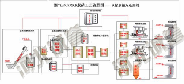 SCR(選擇性催化還原)和SNCR(選擇性非催化還原)聯(lián)合脫硝技術(shù)是一種結(jié)合了兩種技術(shù)優(yōu)點的先進(jìn)工藝,旨在提高脫硝效率并降低運行成本。該技術(shù)的工作原理是先在爐膛高溫區(qū)域(通常為850℃至1150℃)使用SNCR技術(shù)噴射還原劑(如尿素或氨水),初步脫除部分NOx,然后利用逃逸的氨在SCR反應(yīng)器中進(jìn)一步與未被還原的NOx反應(yīng),實現(xiàn)更高效率的脫硝。